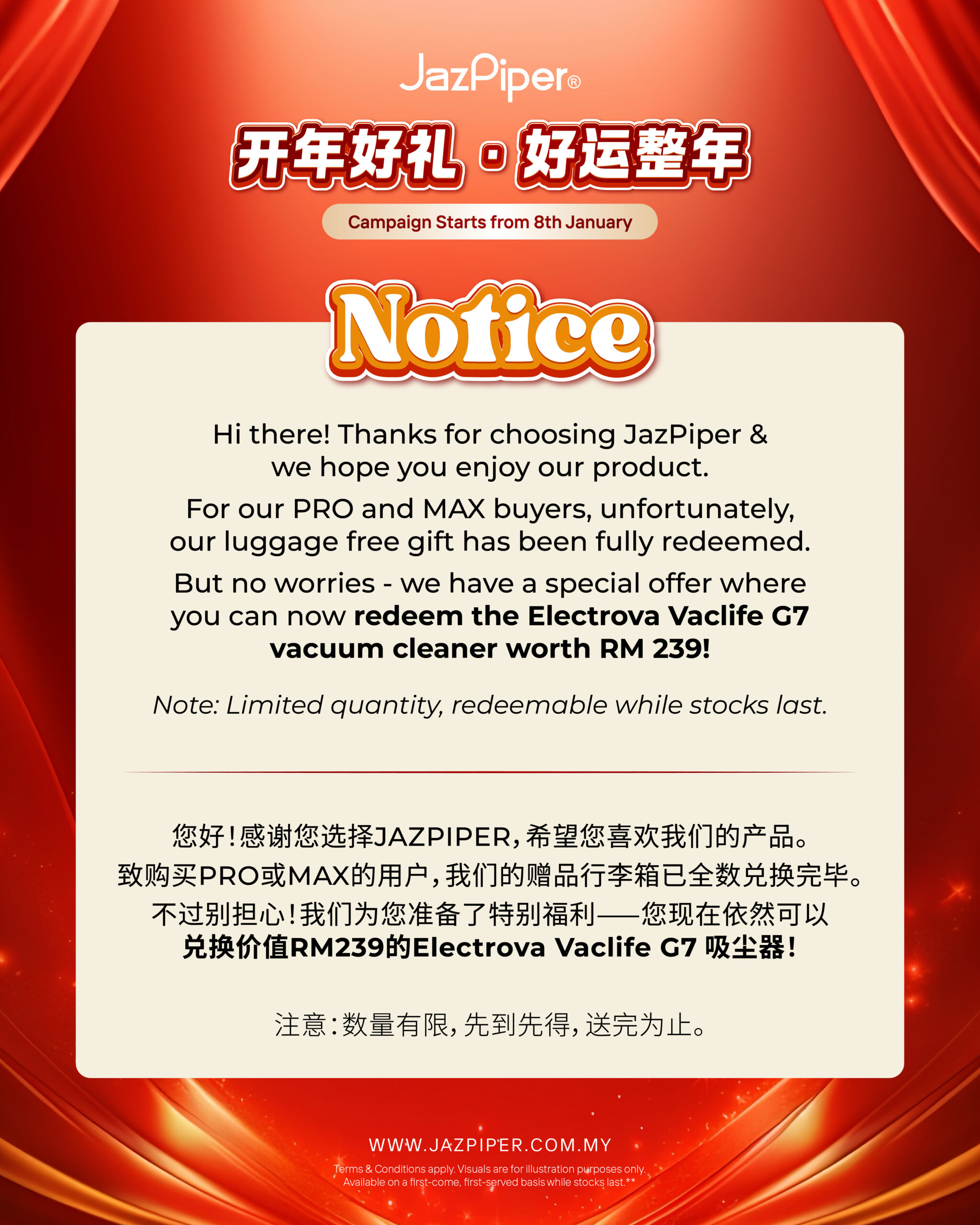 - Promotion is valid for purchases made from 8 January 2026 onwards only.